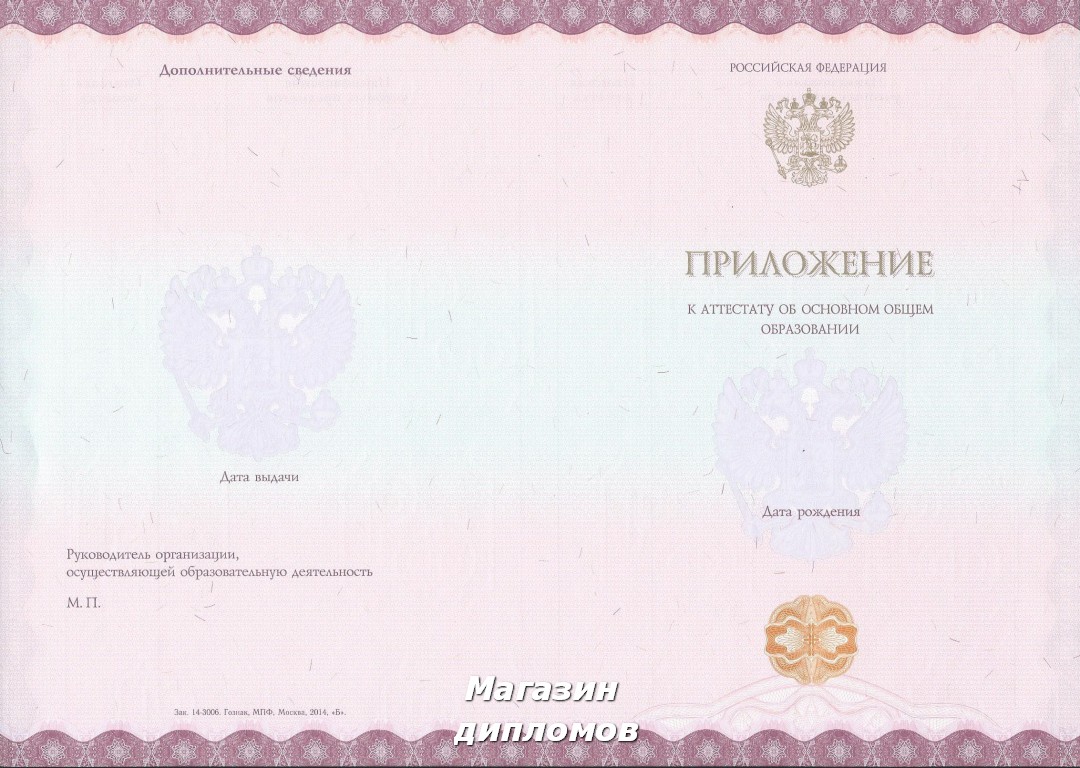 Аттестат Российской Федерации за 9 классов, выдавался с 2014 года.